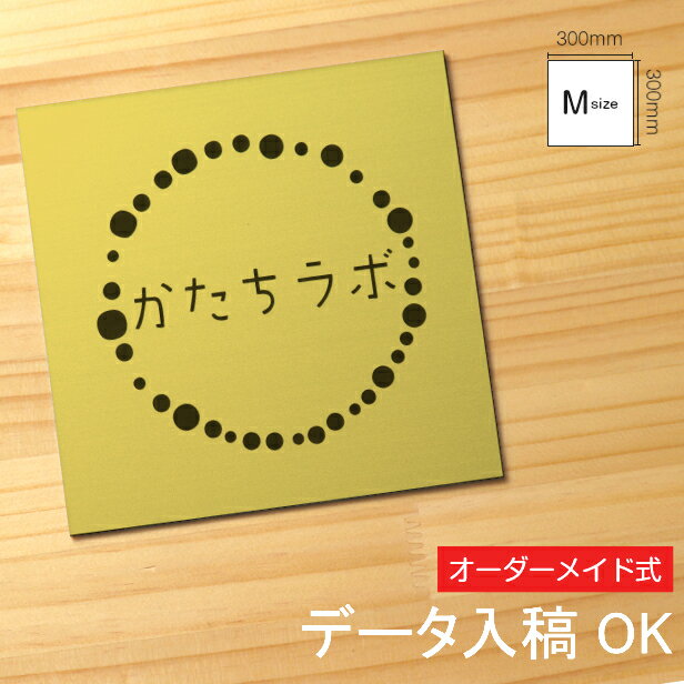 【送料無料】看板 表札 プレート【M】300mm×300mm 真鍮風 ゴールド 正方形 オフィス 法人 企業 店舗 開業 独立 名入れ ネームプレート ドアプレート おしゃれ 金 シール式 シンプル 大きい マンション アクリル製 レーザー彫刻 屋外対応 データ入稿専用商品